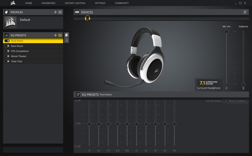 Về phần cách âm thì Corsair đã làm khá tốt. Trong môi trường công sở thì bạn sẽ chỉ cần để khoảng 50% âm lượng là đã đủ để bạn tách biệt hoàn toàn khỏi tạp âm môi trường. Ngoài ra, nếu bạn sợ không thể nghe được người khác gọi khi chiếc tai nghe được cách âm tốt thì bạn vẫn có thể dùng tính năng sidetone để nghe âm thanh môi trường thông qua micro mà không cần tháo tai nghe xuống.