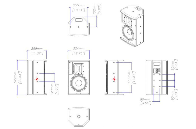 - Tùy chọn treo lắp linh hoạt thông qua các điểm kết nối M8 hoặc có thể dễ dàng đứng trên chân loa thông qua ổ cắm chân loa tiêu chuẩn phía dưới.