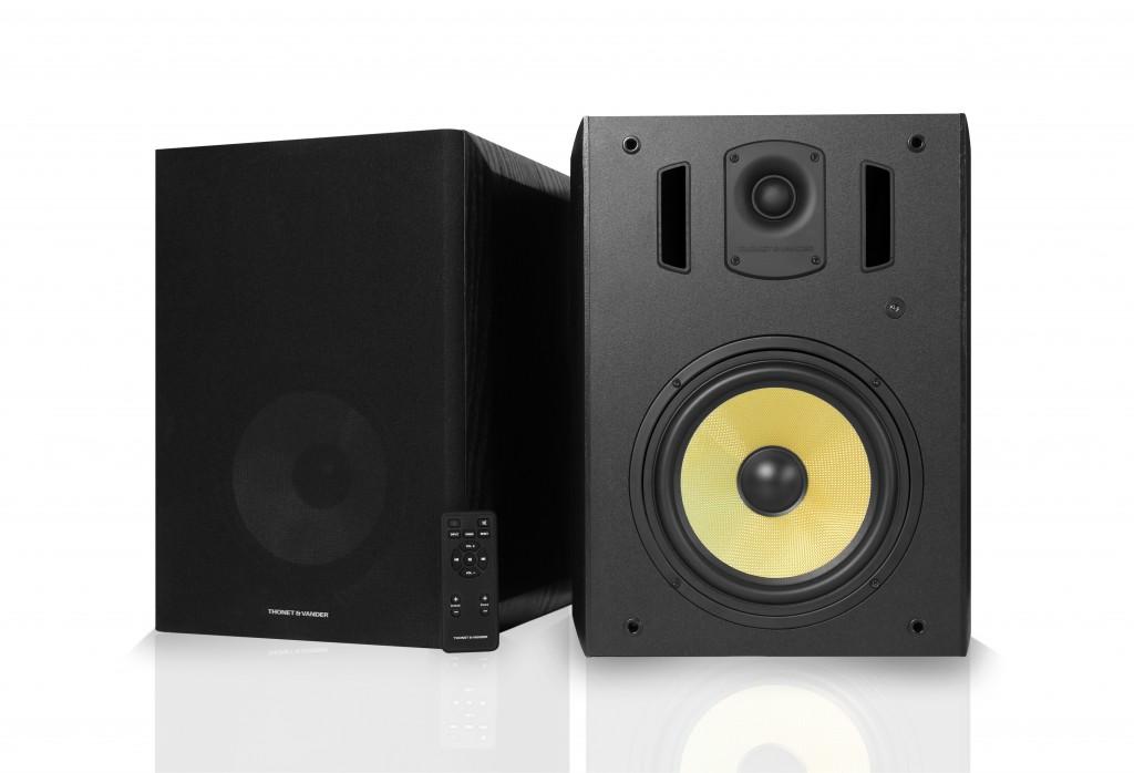 THONET & VANDER TITAN là bộ loa bookshelf có tích hợp kết nối không dây Bluetooth, cổng quang Optical và jack cắm chuẩn 3,5. Công suất của loa là 180W. Loa có thiết kế gọn gàng, vuông vức, trông rất cứng cáp và chắc chắn. Thùng loa có thiết kế Bass Reflex cho tiếng bass xuống sâu và mạnh mẽ.